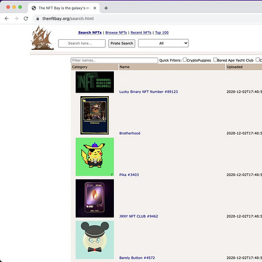 Thieves have stolen bored ape NFTs. They’ve stolen from dead people. They’ve created a performance-art parody of The Pirate Bay called The NFT Bay that literally consists of thousands of “stolen” JPEGs: